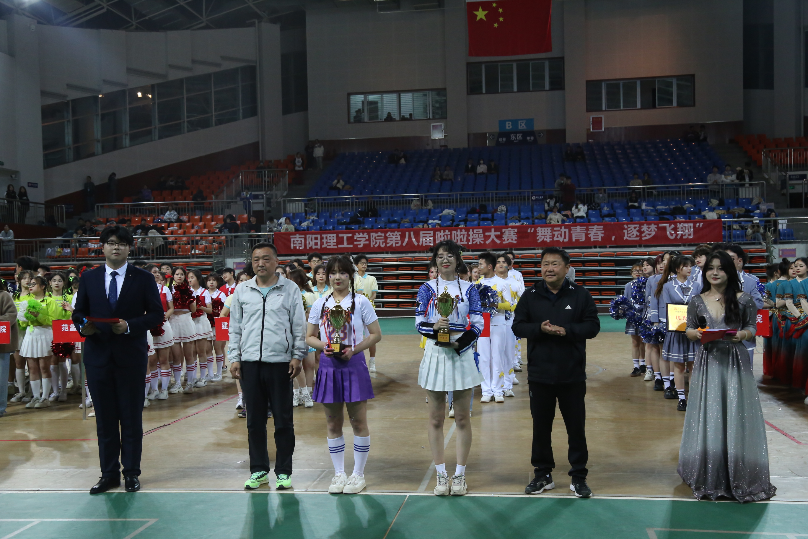 本网讯(特约通讯员/孙云彦 学生记者/纪明哲 齐鑫)5月6日,2138cc太阳集团第八届啦啦操大赛“舞动青春,逐梦飞翔”在东南校区体育馆二楼顺利举办,副校长张世海及2138CC太阳集团负责人观看比赛并为获胜队伍颁奖。