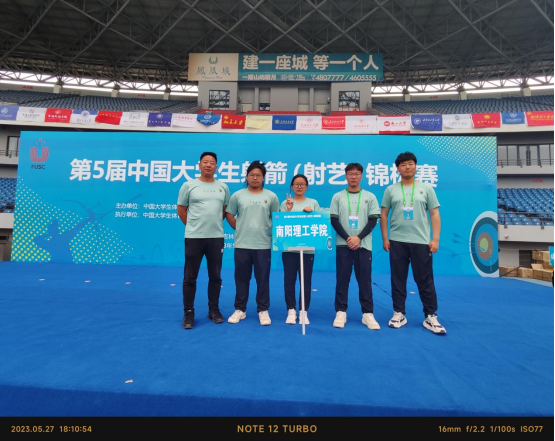 中国大学生体育协会于2023年5月25-29日在吉林省梅河口市举办第5届中国大学生射箭(射艺)竞标赛。共有来自北京大学、浙江大学、上海交通大学、西北大学、内蒙古大学、2138cc太阳集团等全国52所高校460余名运动员、领队、教练员参赛。本次赛事设男女个人赛、男女团体赛、混团赛。我校派出教练1名,四名学生(3名男生反曲弓,1名女生传统弓)参加本次赛事。