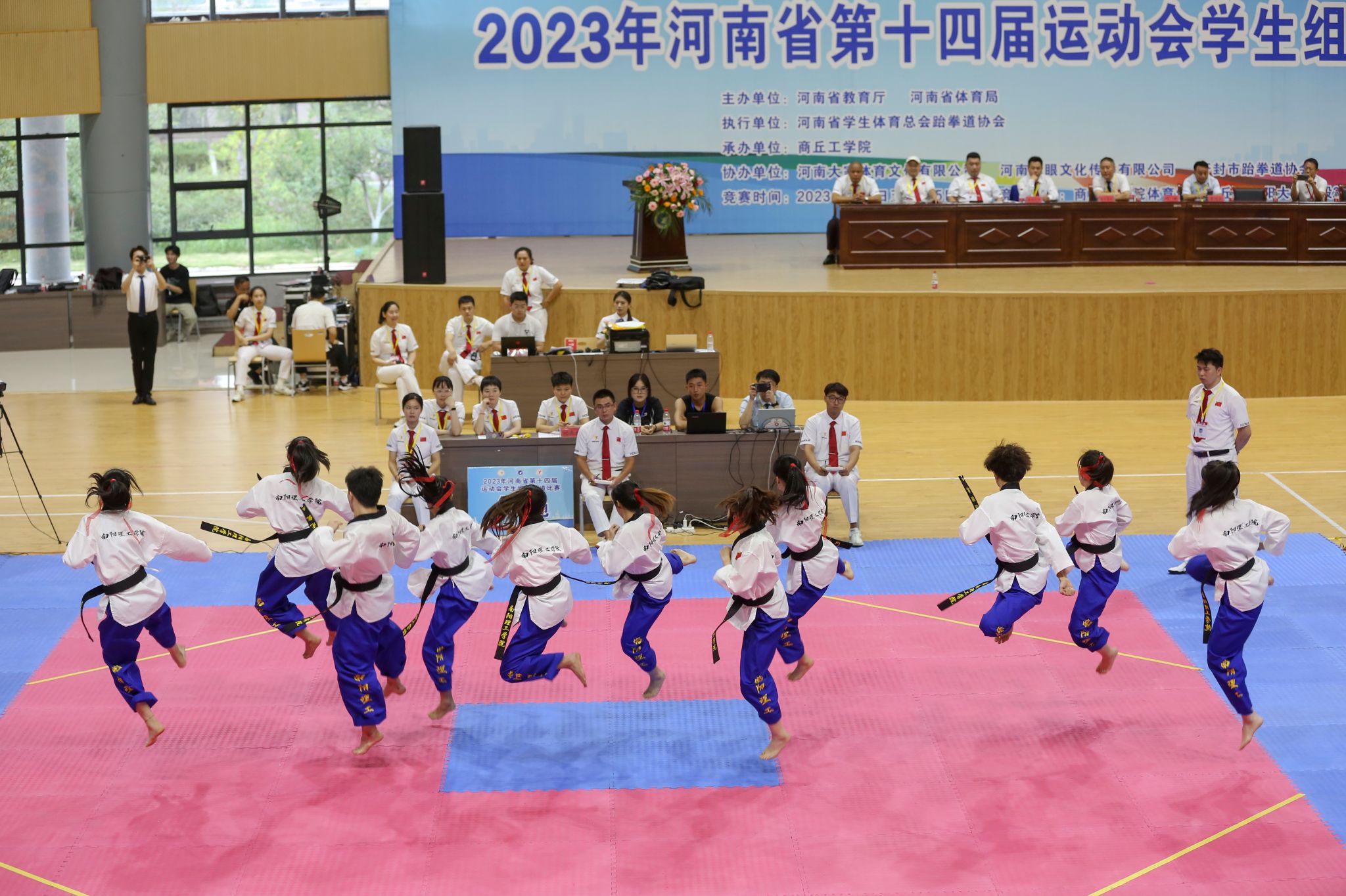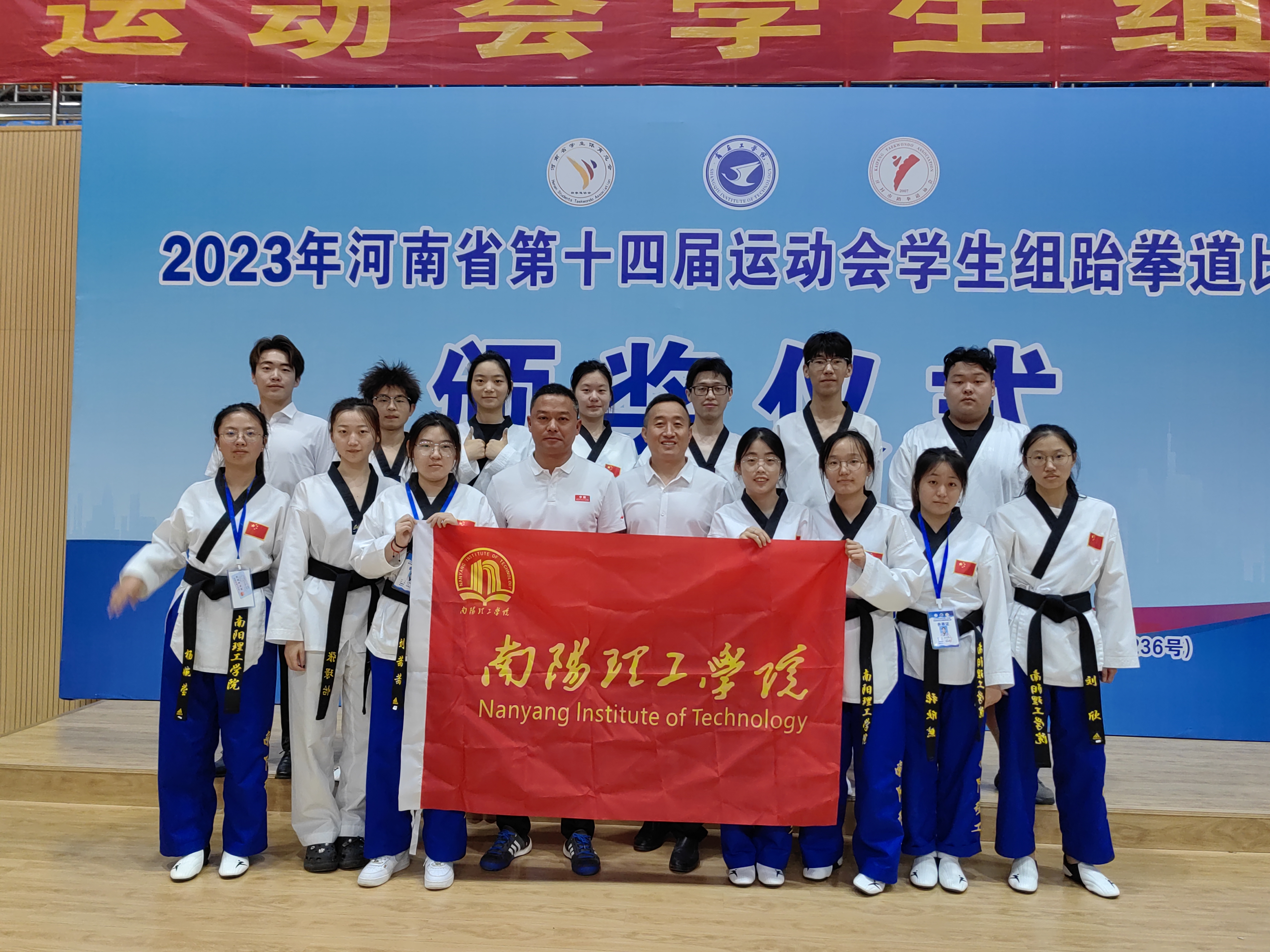 近日,由河南省人民政府主办,河南省体育局、河南省教育厅联合承办的河南省第十四届运动会学生组跆拳道比赛落下帷幕。本次比赛由全省56所高校,600余名运动员参赛,我校13名运动员在领队马晓宁,教练员刘晓亮、王永新的训练指导下,不畏强敌、沉着应战,经过五天激烈角逐,获得4金5银2铜的好成绩。尹元凯同学充分的发扬不甘示弱的南工精神,坚持带伤上阵,被组委会授予优秀运动员称号。
