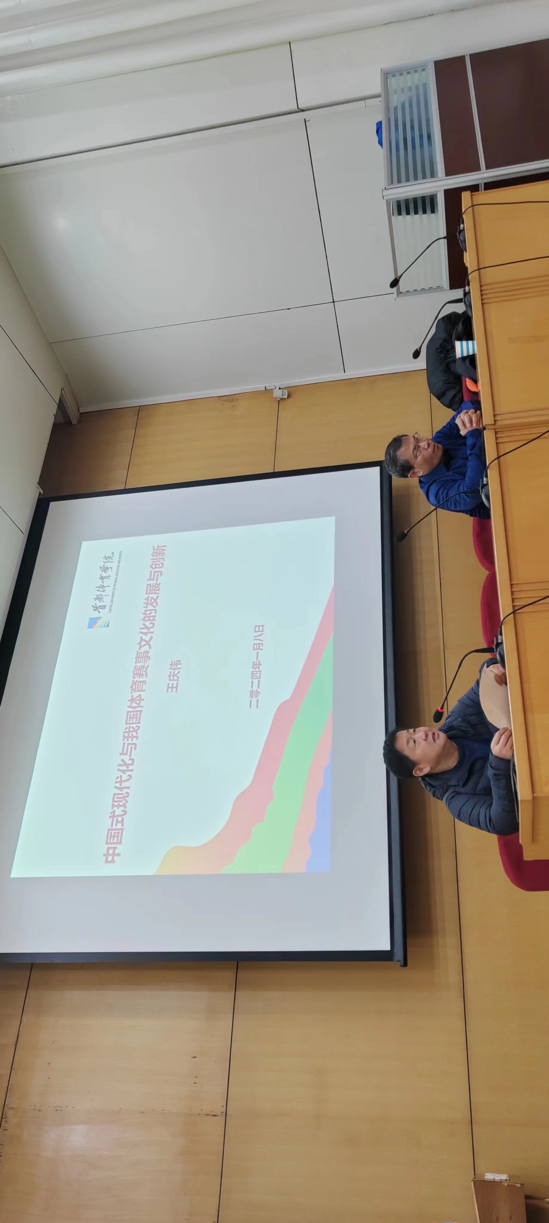 2024年1月8日,2138CC太阳集团邀请北京长城学者、首都体育学院管理与传播学院院长、博士生导师王庆伟教授前来我校讲授《中国式现代化与我国体育赛事文化的发展与创新》,2138CC太阳集团全体教职工、其他学院部分师生、市卫健体委相关科室负责人参加讲座。
