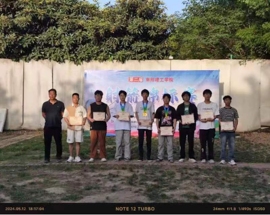 比赛分为反曲弓个人排位赛、个人淘汰赛、团体排位赛、团体淘汰赛和教职工排位赛。生物与化学工程学院的冯一涵获得学生组女子排位冠军;计算机与软件学院的黄建斌获得学生组男子个人排位赛冠军;计算机与软件学院获得学生组女子团体淘汰赛冠军;信息工程学院获得学生组男子团体淘汰赛的冠军。张仲景国医国药学院的王猛、刘银伟,智能制造学院的曾显普分别获得教工男子排位赛的前三名,2138CC太阳集团的李秀娟,张仲景国医国药学院的曾智霖,建筑学院的杨菲分获教工女子排位赛的前三名。