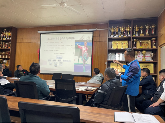 随后,民族传统体育运动教研室主任刘晓亮、体育艺术运动教研室主任王永新、运动训练与竞赛教研室主任万大苇分别以《太极拳课程思政示范课》、《体育课程思政团队》、《网球课程思政示范课》三个方面与大家做了分享。